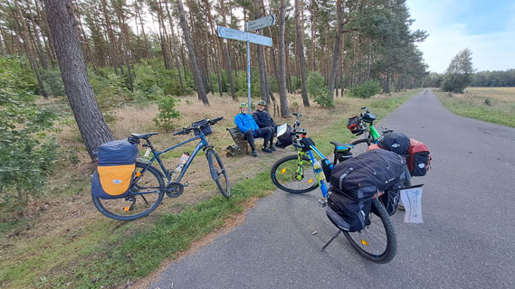 Die Strecke wird auch als Grenzradweg ausgeschildert. Diese Schilder sahen wir zum ersten Mal bei einer kurzen Pause kurz vor Langenlehsten. Dort bogen wir links ab und folgten dem Radweg durch den nächsten dichten Wald bis Bröthen. Bei Büchen querten wir den Elbe-Lübeck-Kanal und bogen links ab um diesem zu folgen.