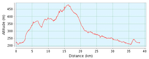 der Tour und gleichzeitig ist der schwierigste Teil der Strecke geschafft. Dort kann man die höchsten Windkraftanlagen der Region finden. Was nun folgt gleicht den Landschaften im Voralpenland.