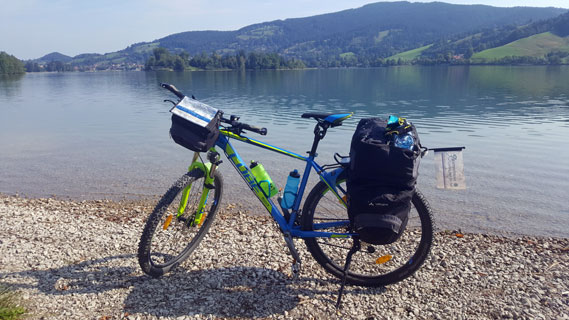 Nach ein paar Kilometern fuhren wir an der Uferpromenade des Hopfensees entlang und genossen die kühle Luft.